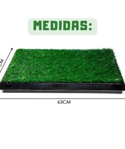 - Hecho de un material de césped sintético que se ve y se siente real. Fácil de limpiar, solo lavar con agua tibia y jabón.
